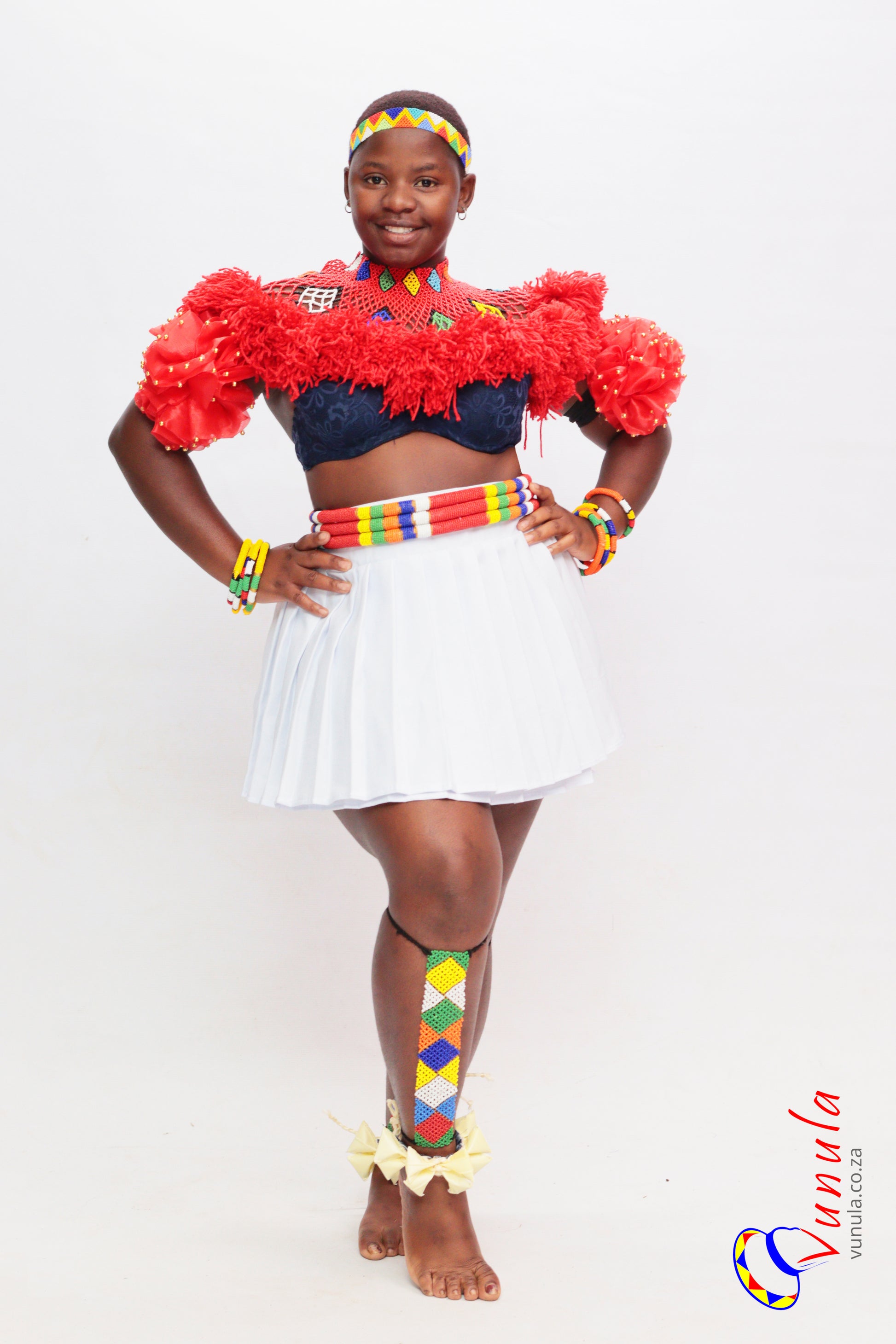 Colorful beaded Zulu leg wraps, known as Amadavathi, are traditionally worn by women as ornaments on their shins. Available in a variety of colours, they’re most often paired with a full set of Zulu attire and are rarely worn on their own with modern clothing.